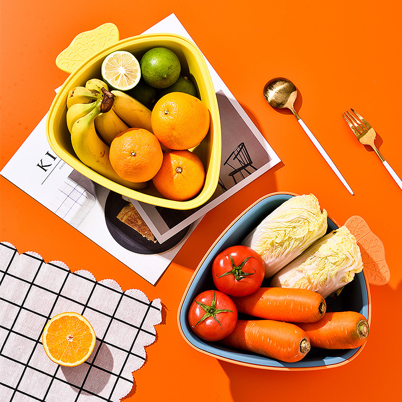 Cartoon Double-layer Drain Basket Kitchen Hollow-out Vegetable Washing Portable Fruit Basket Storage Basket Vegetable Washing Basin Filter Basket Thickened.