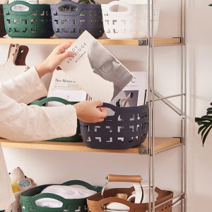 Double Ear Oval L Large Leather Texture Storage Basket Plastic PP Handheld Desktop Storage Basket Kindergarten Toy Sorting Basket