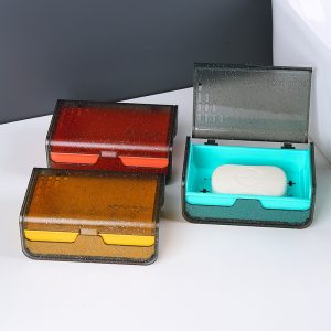 Small Simple Flip Crystal Clear Soap Box Nordic Double-layer Soap Box with Lid No Water Accumulation Soap Box Color Box Packaging.